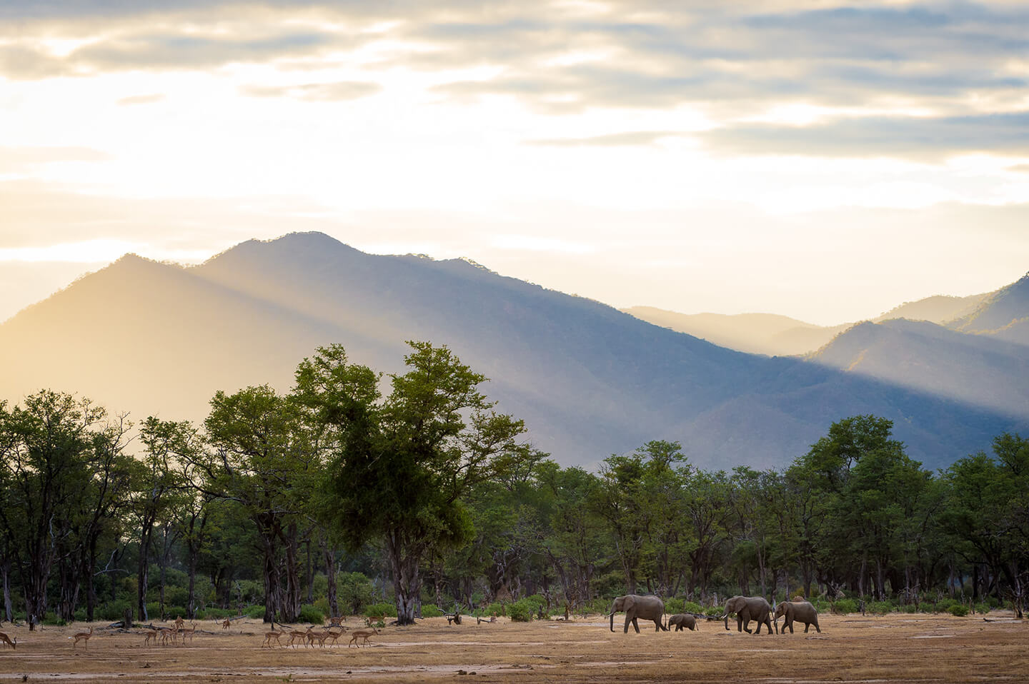 Istituito nel 1963 e Patrimonio dell’Unesco dal 1984, il Mana Pools National Park si estende per 2.196 km² lungo il tratto più basso del Fiume Zambesi. Mana significa "quattro" in lingua Shona, in riferimento alle quattro grandi pozze d'acqua formate dallo Zambesi nel cuore del parco. Mana Pools ospita numerose specie di grandi mammiferi e oltre 350 specie di uccelli. Il parco è unico per i suoi elefanti "arrampicatori", per l'atmosfera incantata lungo le sponde del fiume e per gli incredibili safari in canoa e a piedi, questi ultimi anche senza una guida.