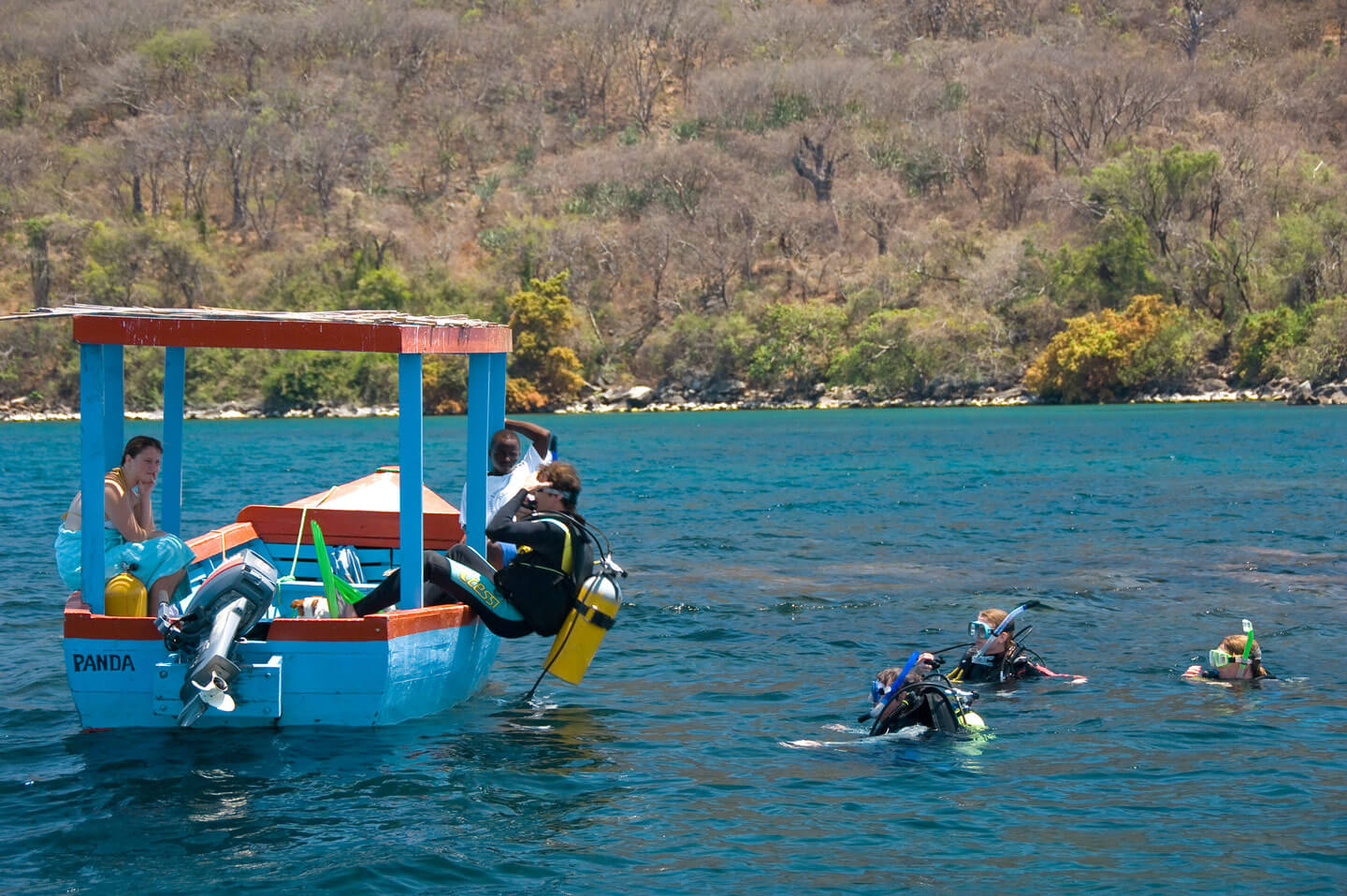 Almost 600 km long and up to 80 km wide, Lake Malawi is one of the largest Rift Valley lakes and covers over 20% of the country's surface. Along the Lake shores long sandy beaches are interrupted by secluded coves and fishermen villages. The warm and crystal clear waters of Lake Malawi are dotted with small islands such as the beautiful Likoma and are home to over 1.000 cichlid fish species, most of which are endemic. The southern part of the Lake is protected by the namesake national park, declared a World Heritage Site by UNESCO.