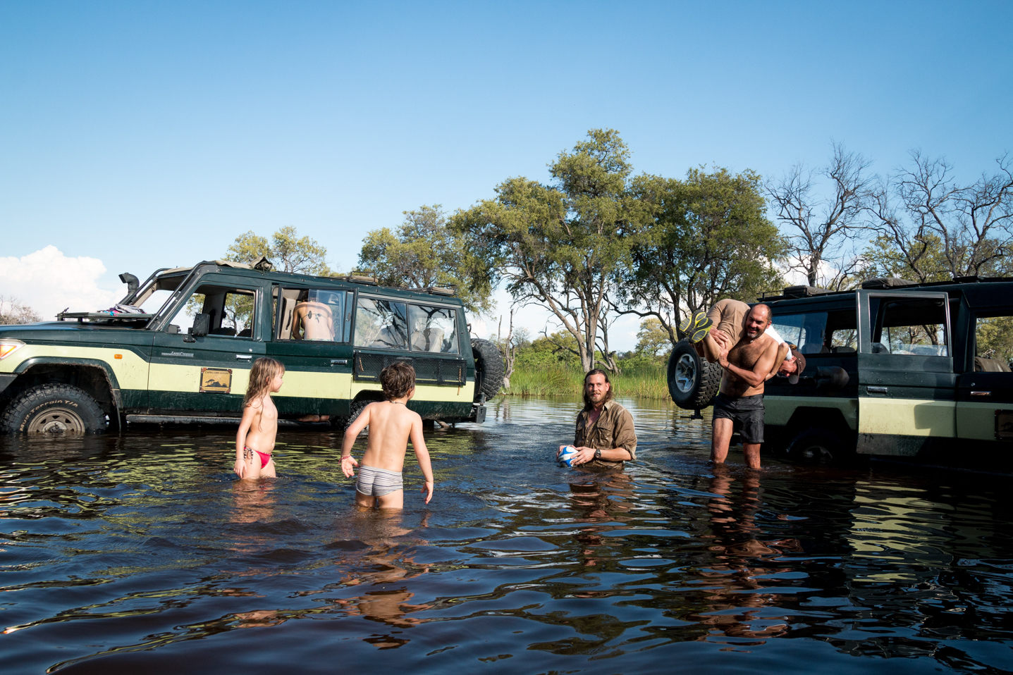Pescare e nuotare con i nostri figli nelle acque limpide del Delta dell’Okavango. Così, semplicemente, come se fossimo al mare in Italia, invece ci trovavamo in uno dei luoghi più remoti e selvaggi della terra.